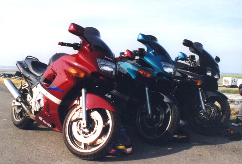 ma moto, celle de mon frère (bridée par l'encrassage), et la HONDA VFR 800 d'un ami......
